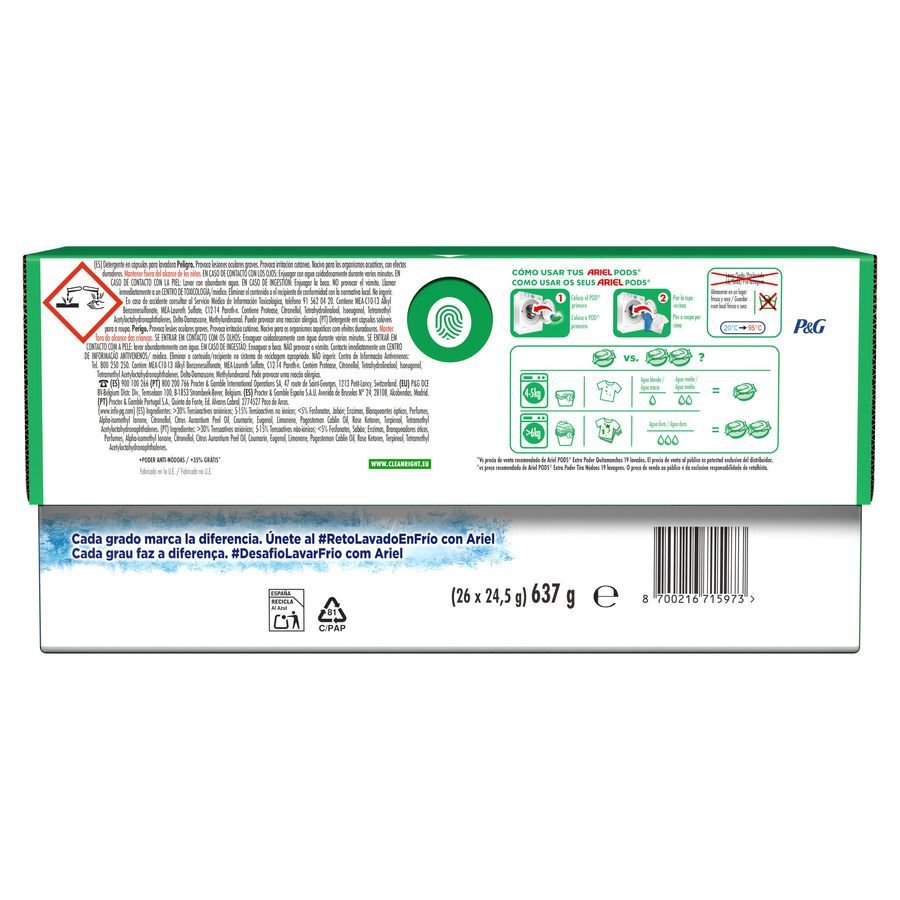 Este detergente proporciona un olor fresco que perdura, ofreciendo resultados profesionales desde la comodidad de tu hogar. Ideal para quienes buscan eficacia máxima en lavados en frío, Ariel PODs combina practicidad y potencia quitamanchas, simplificando la rutina de lavado.