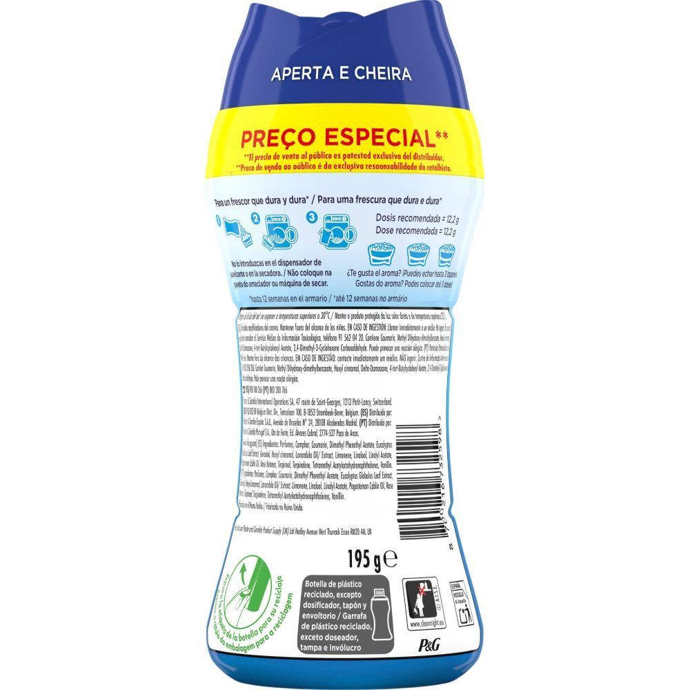 Beneficios clave y modo de uso: aroma intenso y duradero hasta 12 semanas, fragancia de flores silvestres y notas de madera, personalización de la intensidad según cantidad de perlas, fácil de usar vertiendo directamente en el tambor vacío antes del lavado, se complementa con suavizantes Lenor para un efecto irresistible. Una solución que combina frescura premium con una excelente relación calidad-precio, ofreciendo resultados de alta gama accesibles para cualquier hogar.
