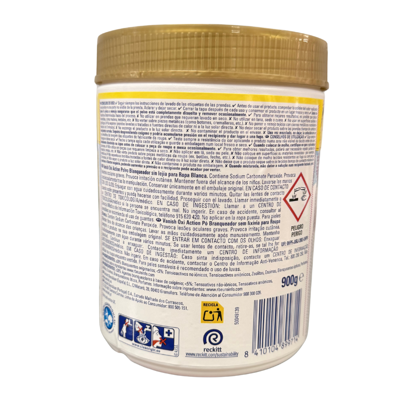 Vanish Oxi Advance Ropa Blanca elimina las manchas a la primera y potencia el blanco de tus prendas, devolviéndoles su brillo original sin dañar los tejidos.